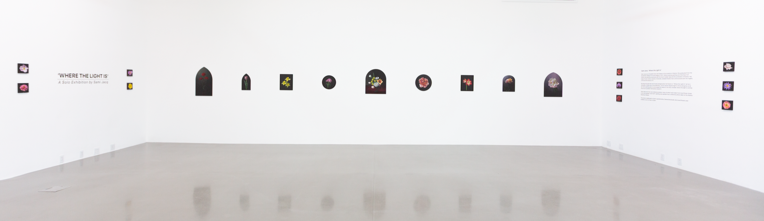Bursting through dark and moody backgrounds, the flowers in “Where the Light Is” act as a reminder of hope even in the darkness. Just as nature requires light to thrive and grow, so do we. Each painting aims to encourage the viewer to not only consider where this light is coming from but to position themselves toward it.