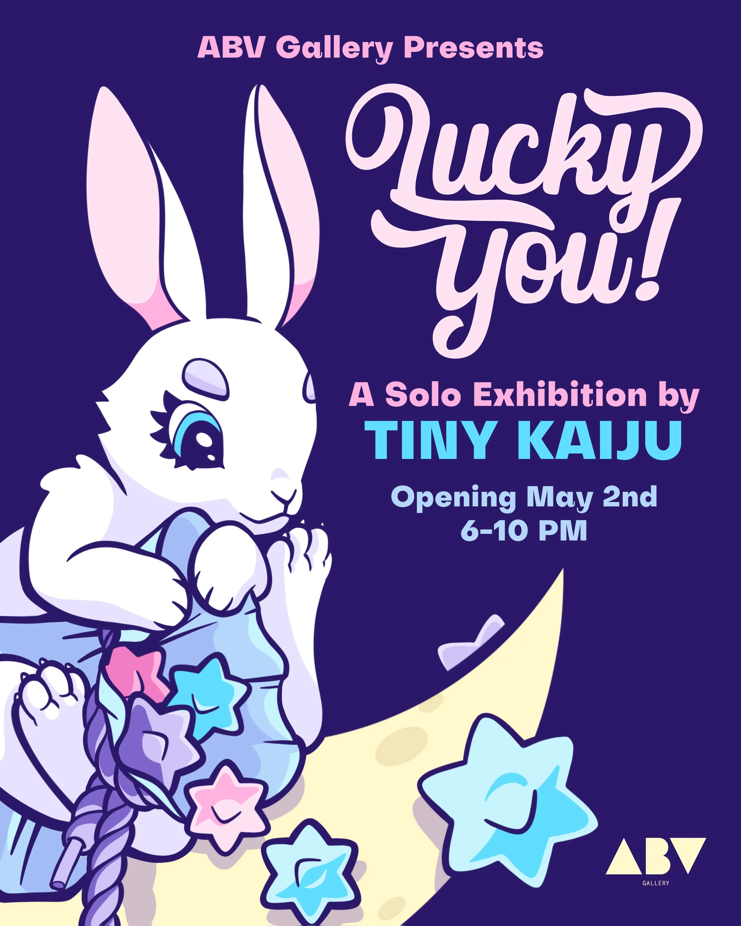 'Lucky You' is the culmination of Tiny Kaiju's lifelong fascination with cartoons, symbolic imagery, and Japanese culture. Drawing inspiration from her travels through Tokyo, Kyoto, and Osaka, the work explores themes of luck, superstition, and personal mythology. Each piece weaves together nostalgic references, cultural motifs, and intimate talismans, resulting in a vibrant and visually rich body of work that feels playful and positive.